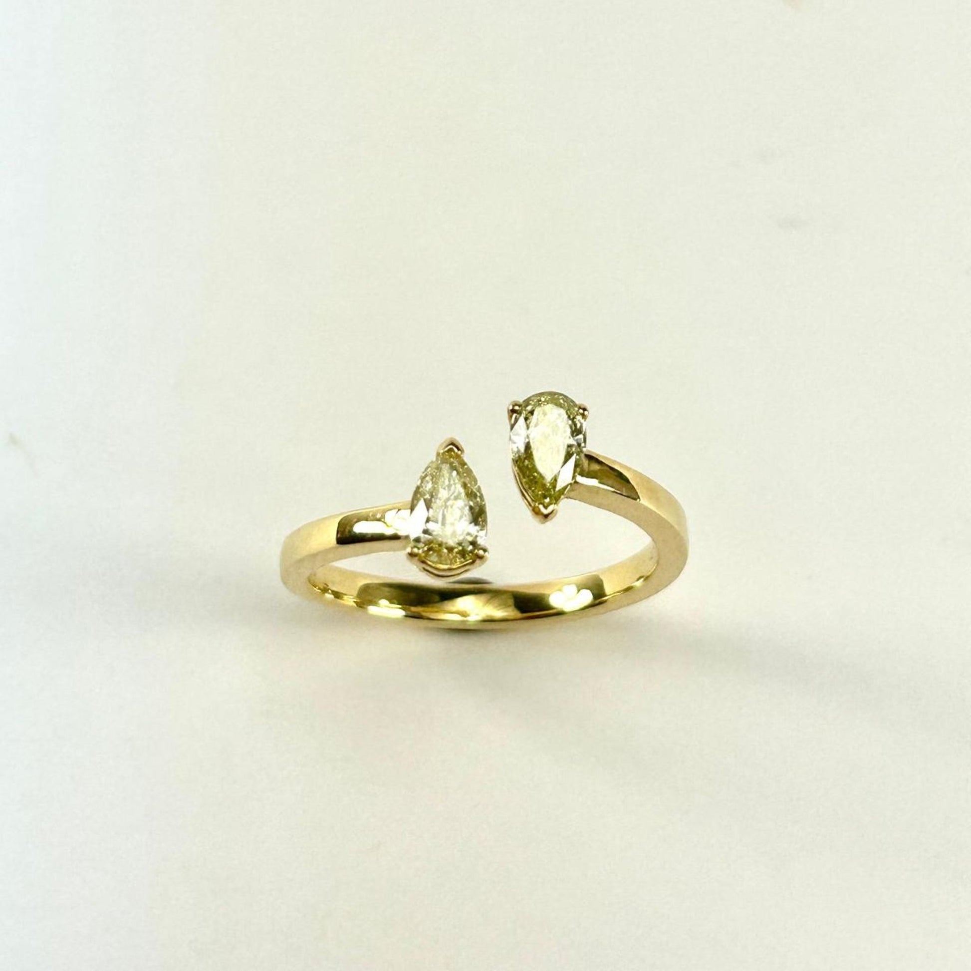 Anello in oro 18 Kt gr 3,48, con Diamanti naturali taglio goccia Fancy color Ct 0,63.
