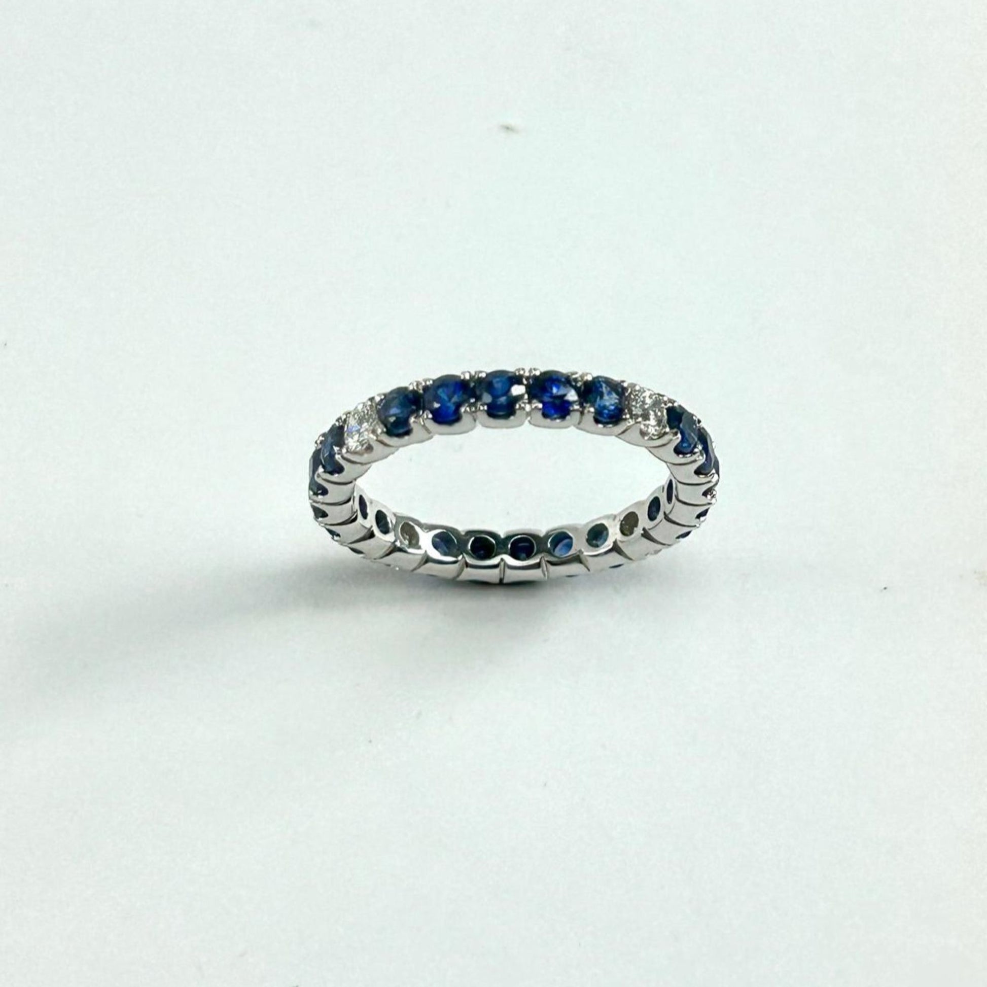 Anello in oro bianco 18Kt gr 2,61, con Diamanti Ct 0,27 taglio Brillante, e Zaffiro Ct 1,77 taglio Brillante.